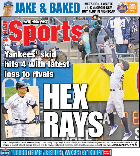 The Bombers lost 6-3 — a second straight loss to their division rivals . . . to sink further into the AL East basement at 5-9. They have the worst record in the American League and the third-worst in MLB. . . .