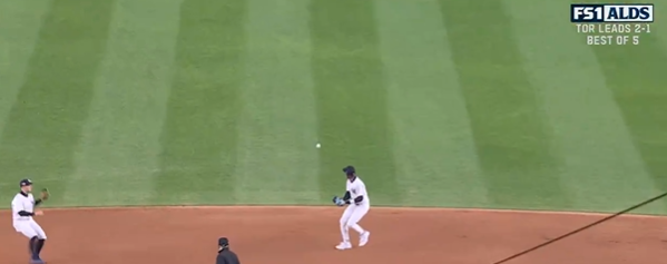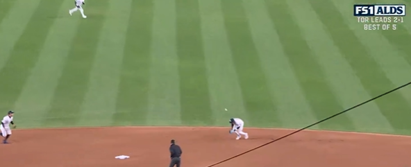 On the Fox broadcast, analyst John Smoltz claimed the ball on Chisholm's miscue "exploded" off the edge of the grass, and that made the play more difficult for the second baseman.