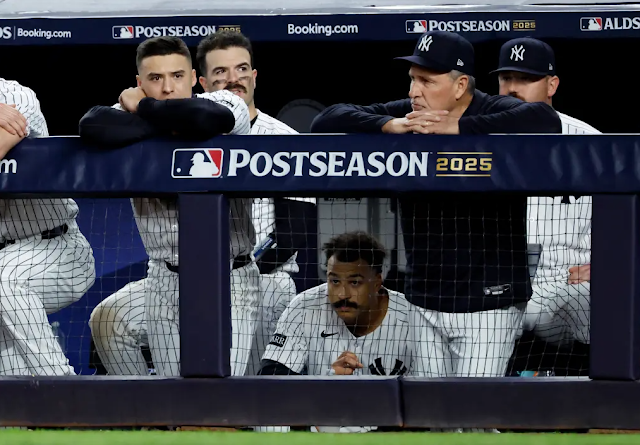 An overmatched Anthony Volpe, a regressed Trent Grisham, Ben Rice and Jazz Chisholm Jr. combined for nine hits in this series — or the same number as the pesky Ernie Clement, who symbolizes Toronto's tenaciousness mode. The Blue Jays force you to keep playing the ball, which the Yankees did remarkably well — until they didn't. Until Chisholm made a seventh-inning error . . . two unearned runs . . . score[d] and the door to a cold Yankees winter was again being walked through. . . .